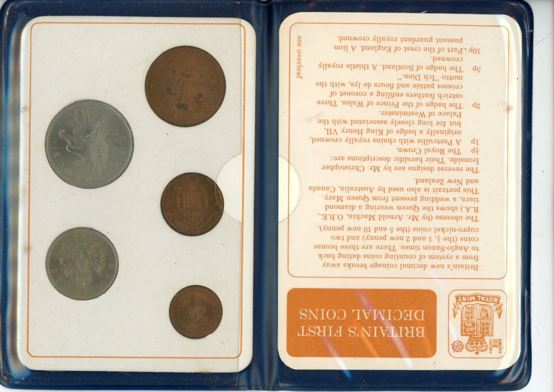 Britain’s First Decimal Coins. 1971 issue of 5 coins. In folder of issue.