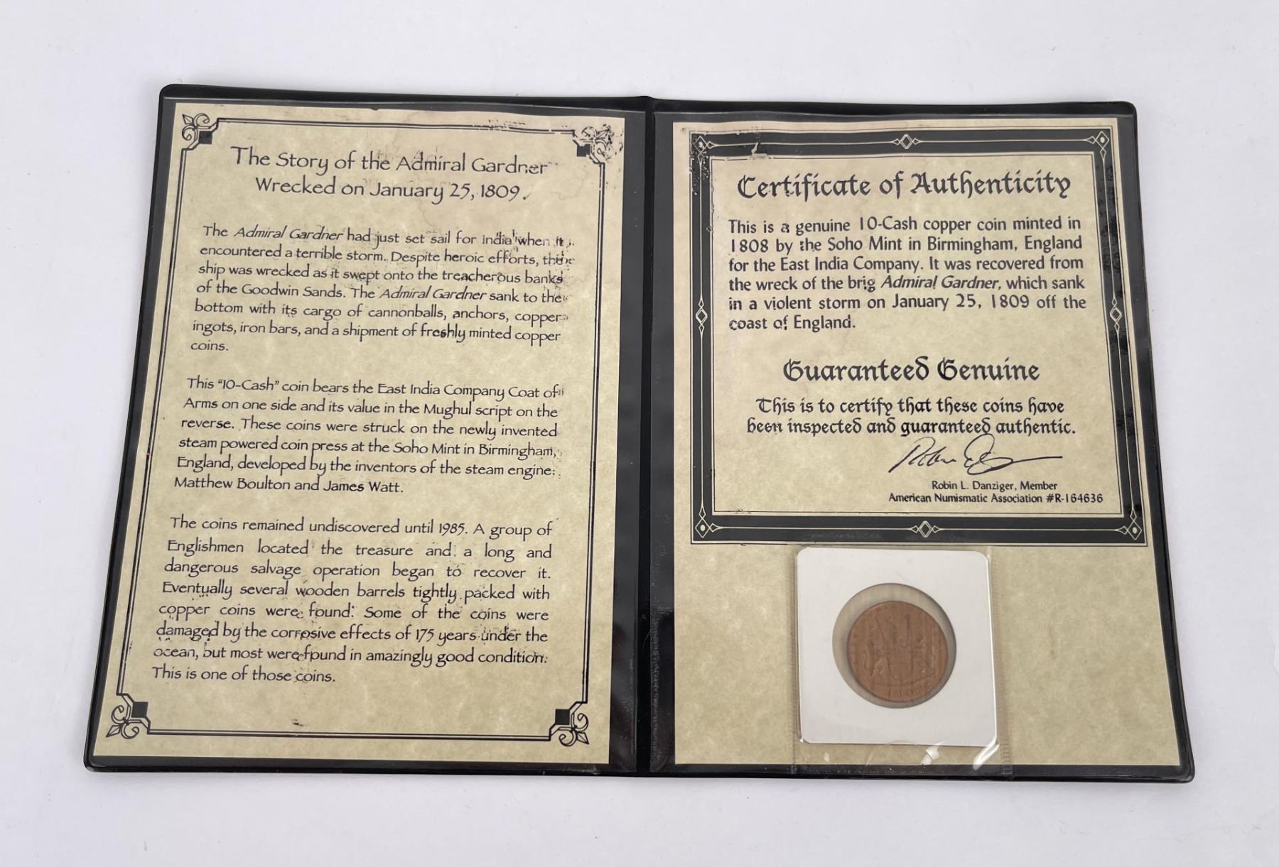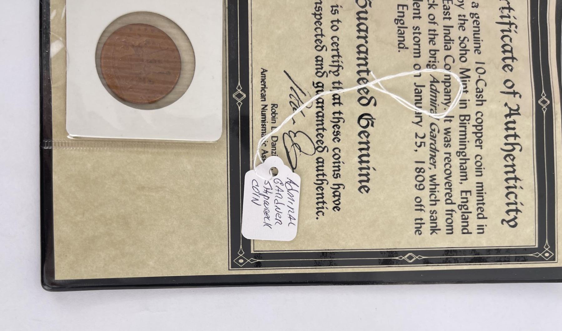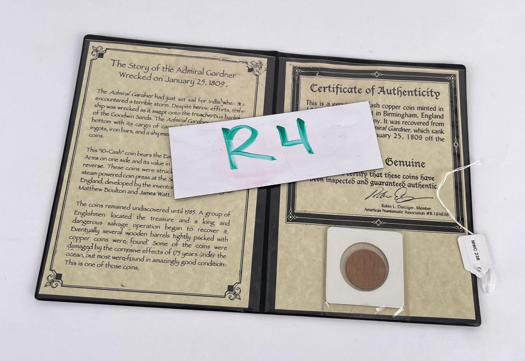 Antique Shipwreck Coin from the Admiral Gardner which sank in 1809 on the Goodwin Sands, off the coast of England. Among its cargo were freshly minted copper coins of which this is one, discovered in 1985.