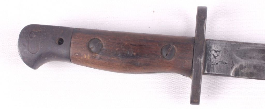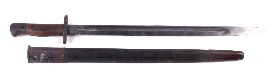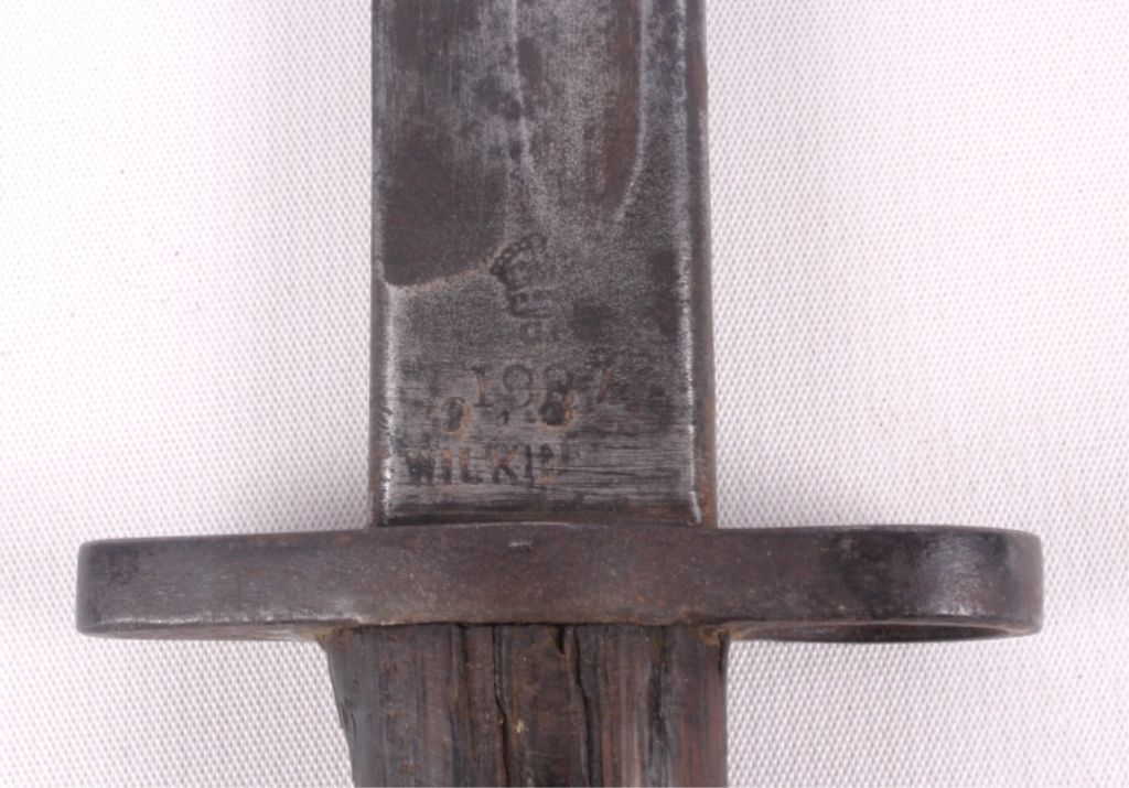 This lot features a British 1907 Wilkinson bayonet. It is marked near the hilt. It is 22.5" overall and the blade is 17".