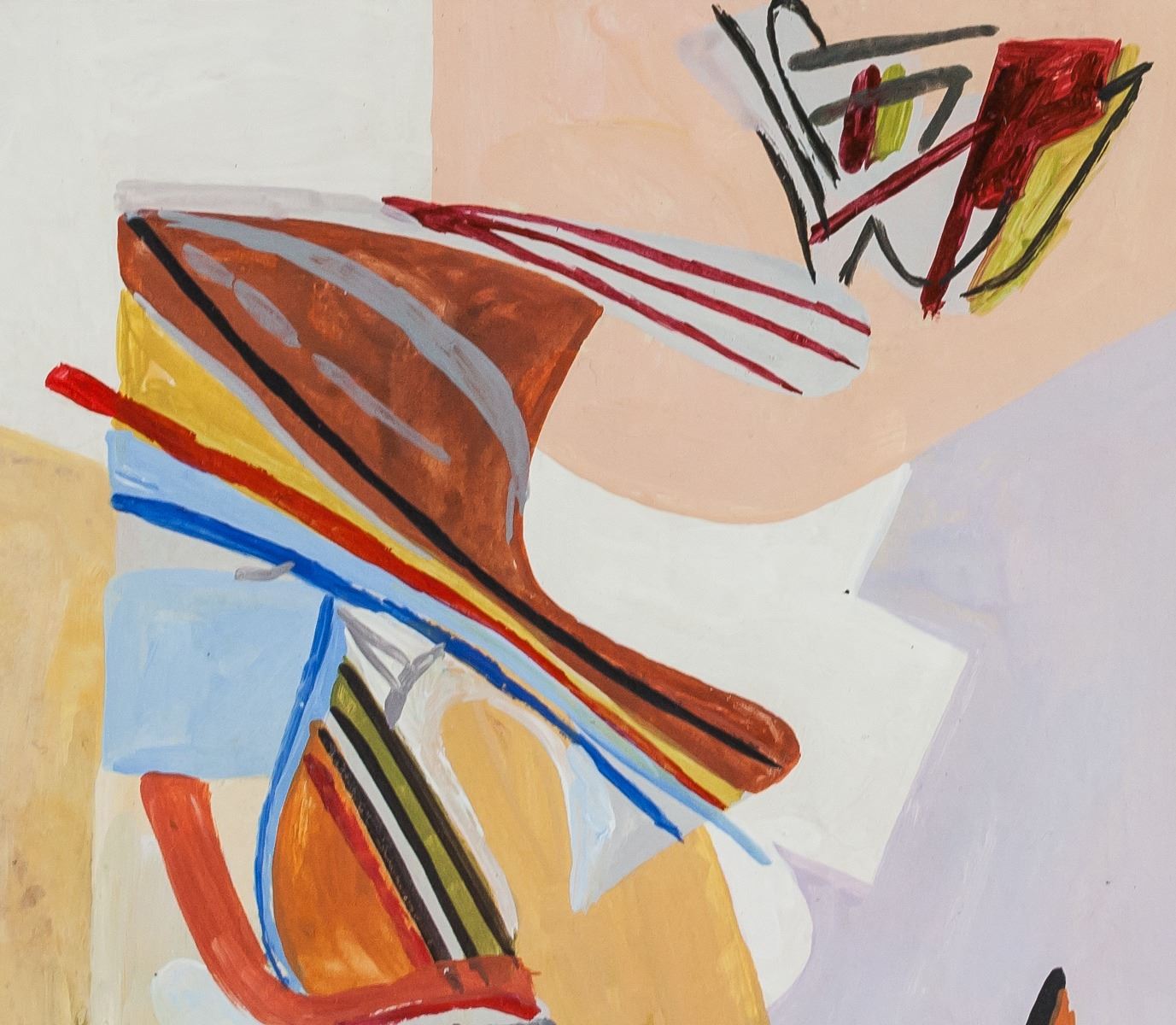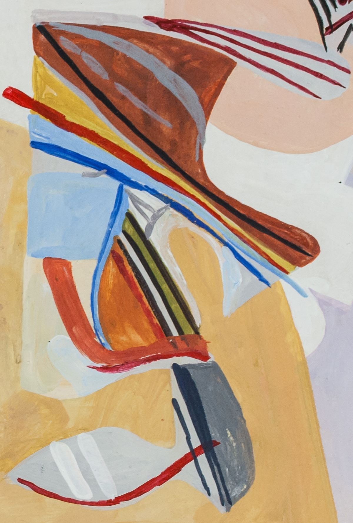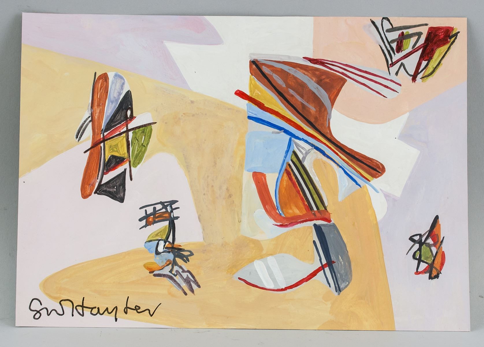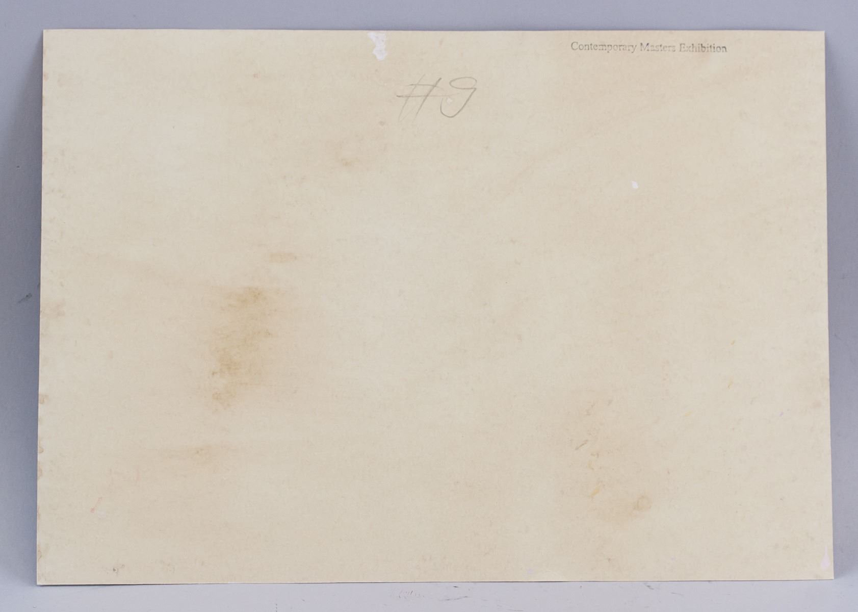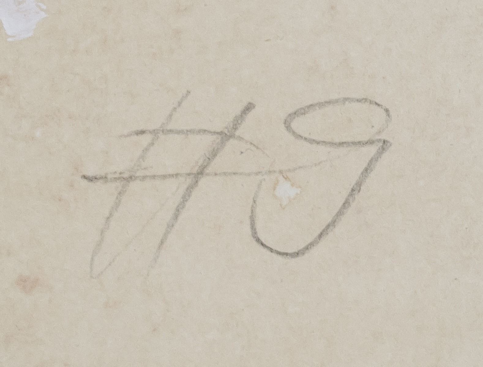 Gouache on paper. Featuring an abstract composition. Signed on the lower left corner. Inscribed in pencil #9 on verso. Stamped Contemporary Masters Exhibition on the upper edge of verso. 20 x 28 cm (7.9 x 11.0 inches). PROVENANCE: Southern Ontario estate
