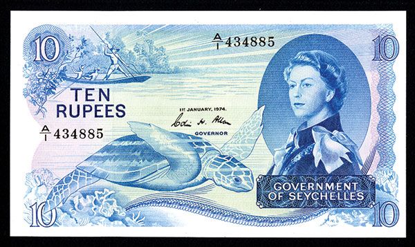 Seychelles, issued note, 10 Rupees, 1974, P-15b, PMG 64 Choice UNC EPQ Previously Mounted.