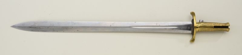 British Brunswick Model 1836 bayonet with brass grip in overall fine condition; hard-to-find in any condition. Est.: $350-$700.