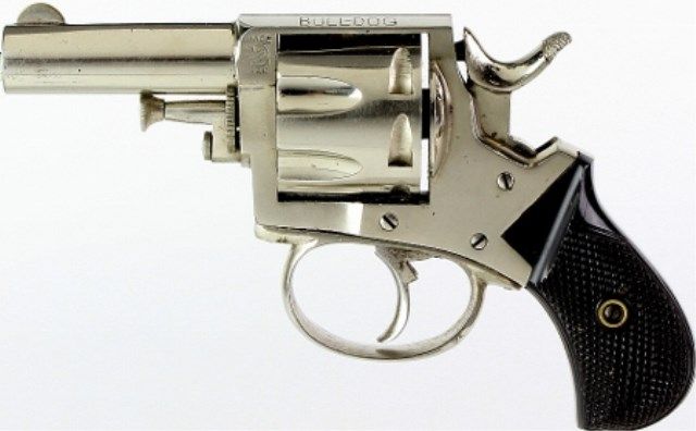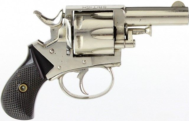 nickel finish with black hard rubber checkered grips, 2 3/8" barrel, very good action and tight bore, dark with strong rifling. Antique. Est. 275-400
