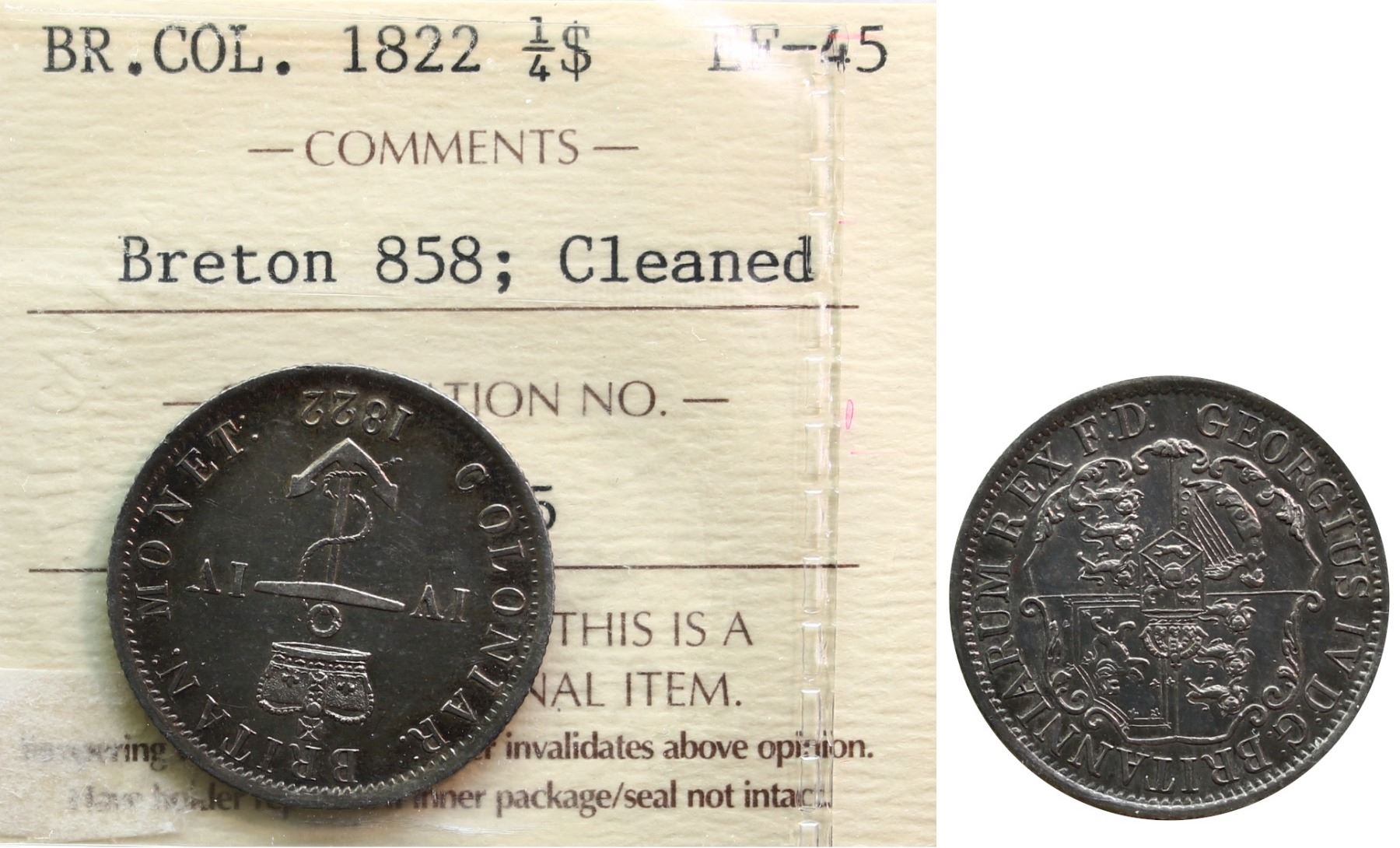 British Colonies; 1822 1/4$ Br;858 ICCS EF45 Cleaned