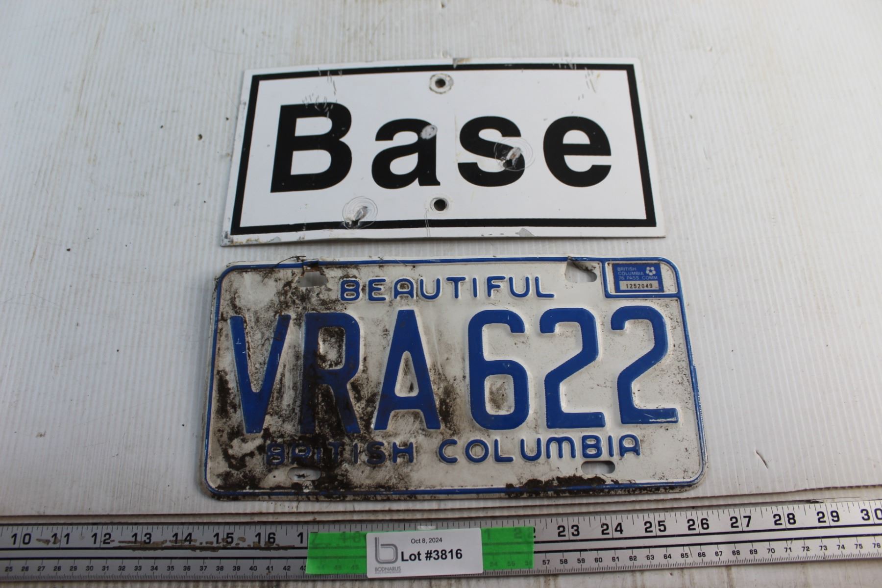 British Columbia (BC) License Plate and '' Base '' Sign 12'' x 6''