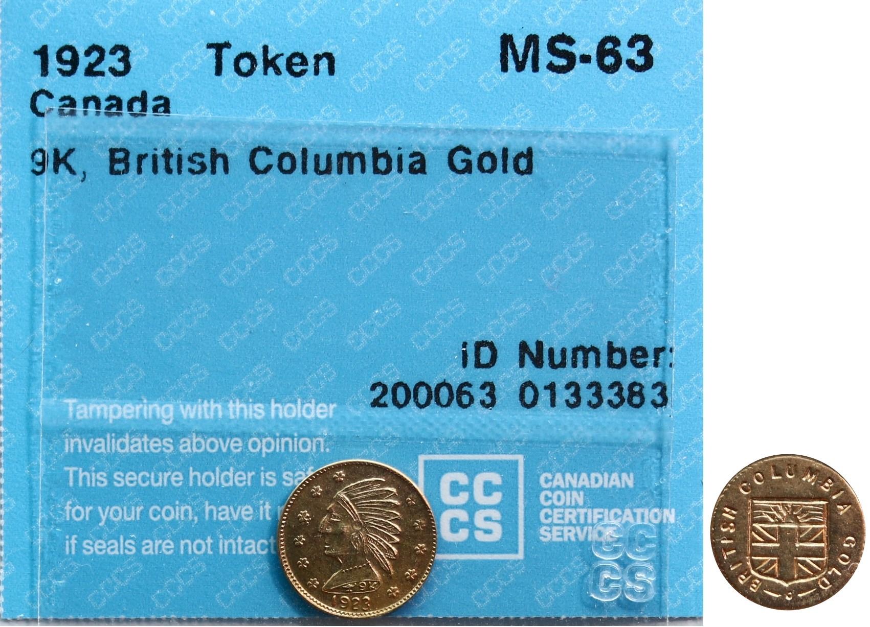 British Columbia Gold; 1923 9kt Gold, CCCS MS63.