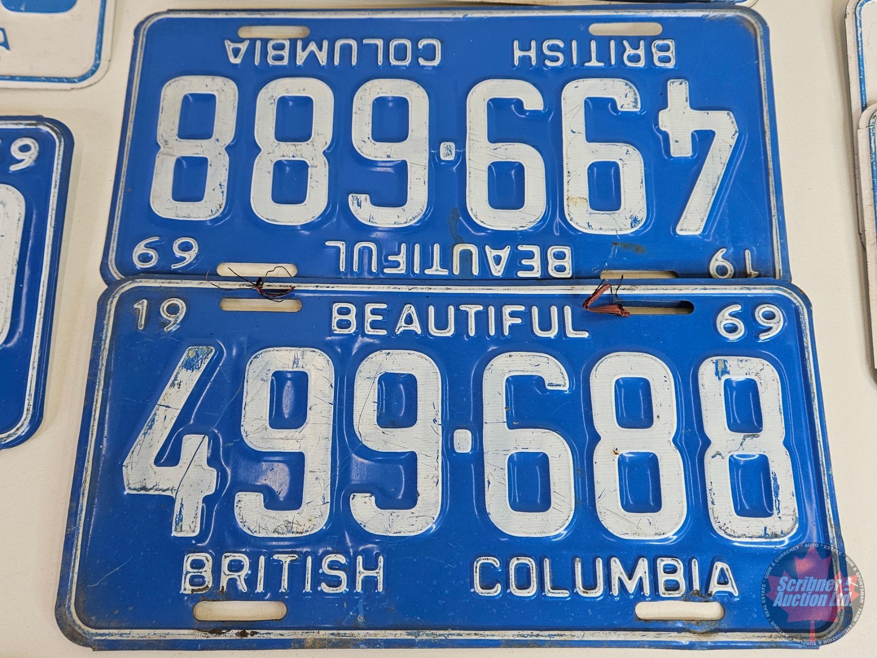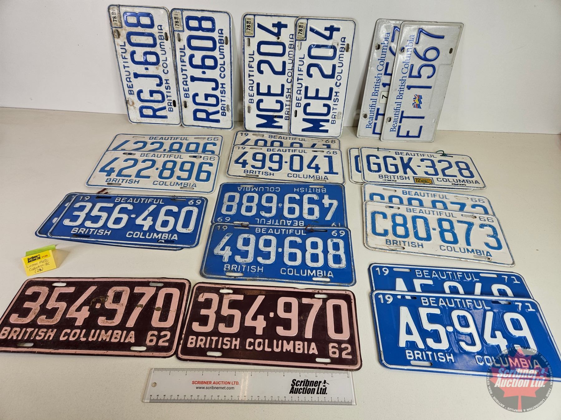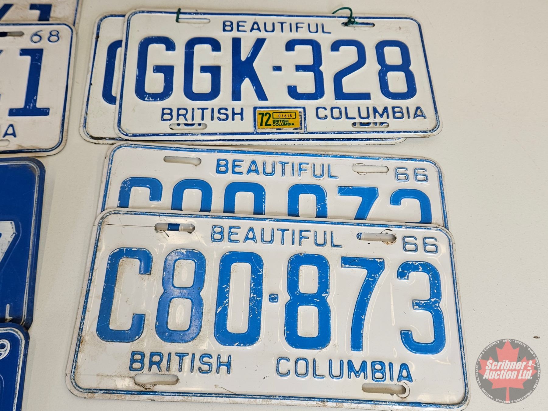 British Columbia Lic Plates (22) : 1960's-70's + (All Matching Sets)