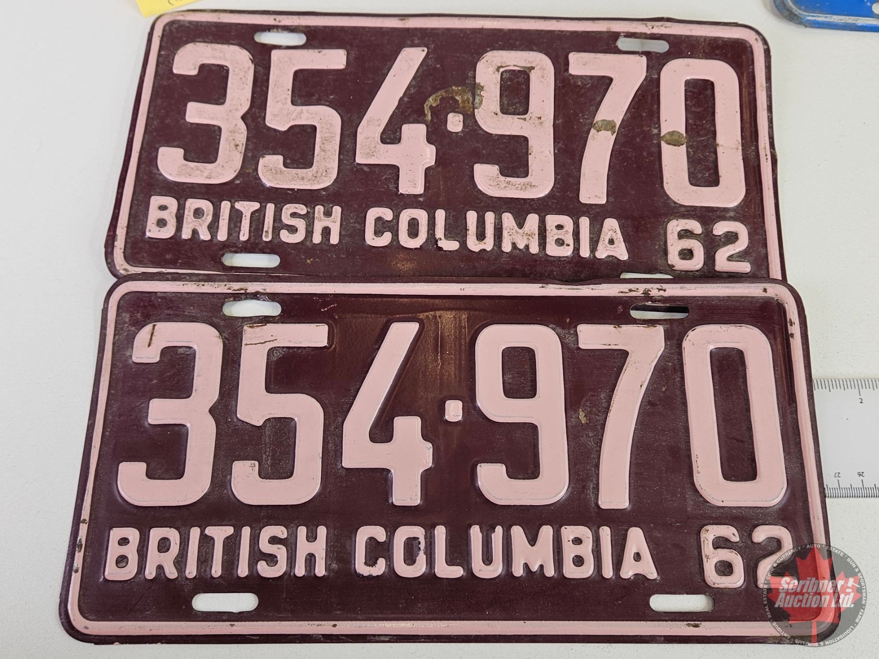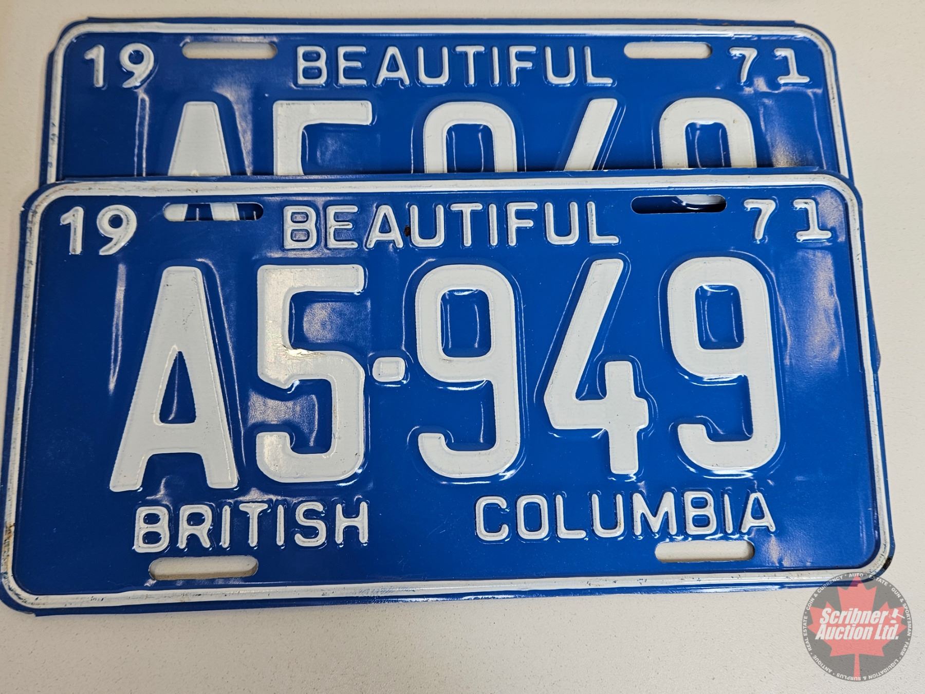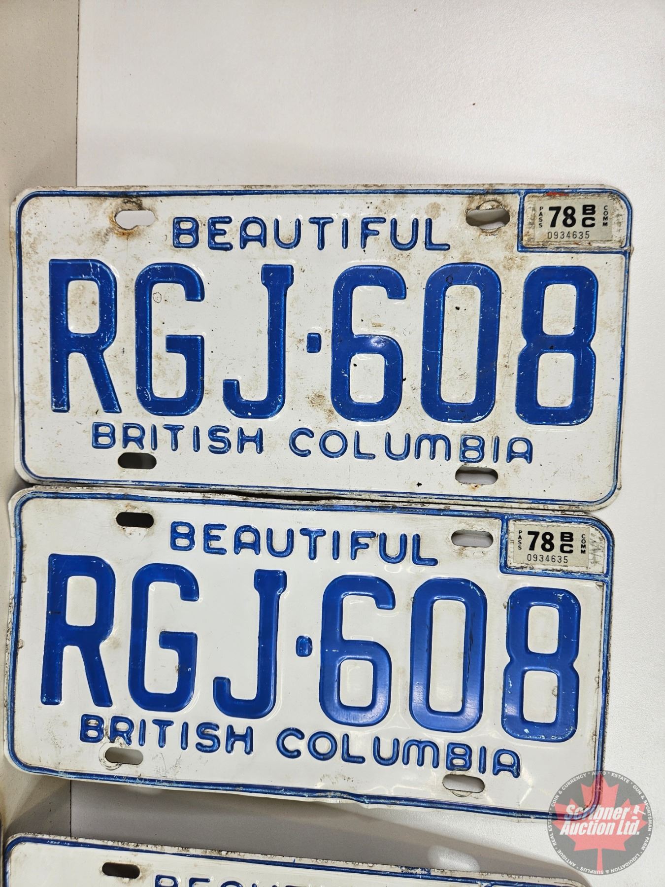 British Columbia Lic Plates (22) : 1960's-70's + (All Matching Sets)