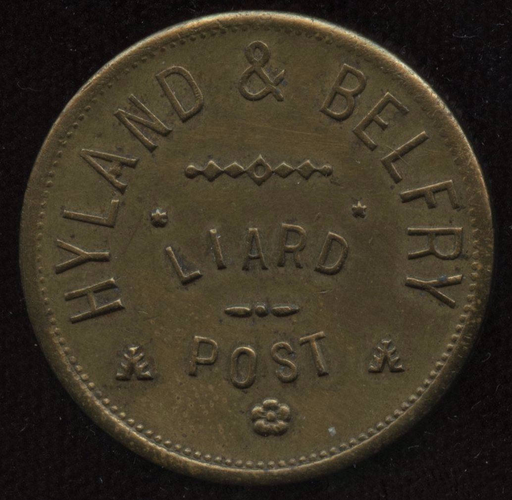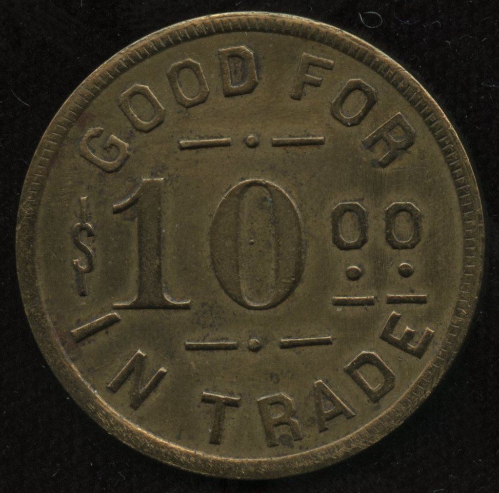 Hyland & Belfry, $10.00, brass, scarce fur trade token.