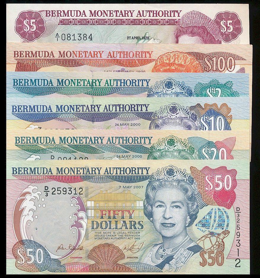 British Commonwealth Banknote Lot; includes Bermuda Monetary Authority 1978 $5, 1996 $100, 2000 $2, $10, $20 & 2007 $50. Lot of 6 notes VF to UNC