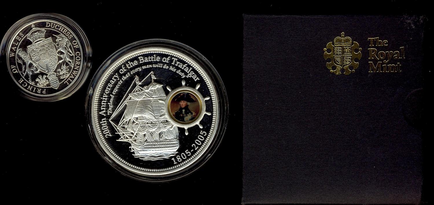 British Commonwealth Mint Products. Includes numerous Silver coins in original Mint Holders or Cases. 1805-2005 $10 200th Ann. Of the Battle of Trafalgar, Prince of Wales 9th April 2005 Silver Proof Medal to Commemorates the Marriage of camilla Parker Bowles and the Prince of wales and 2010 Britannia 2 pounds 1oz Fine silver.