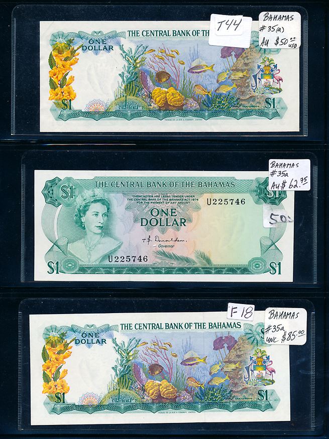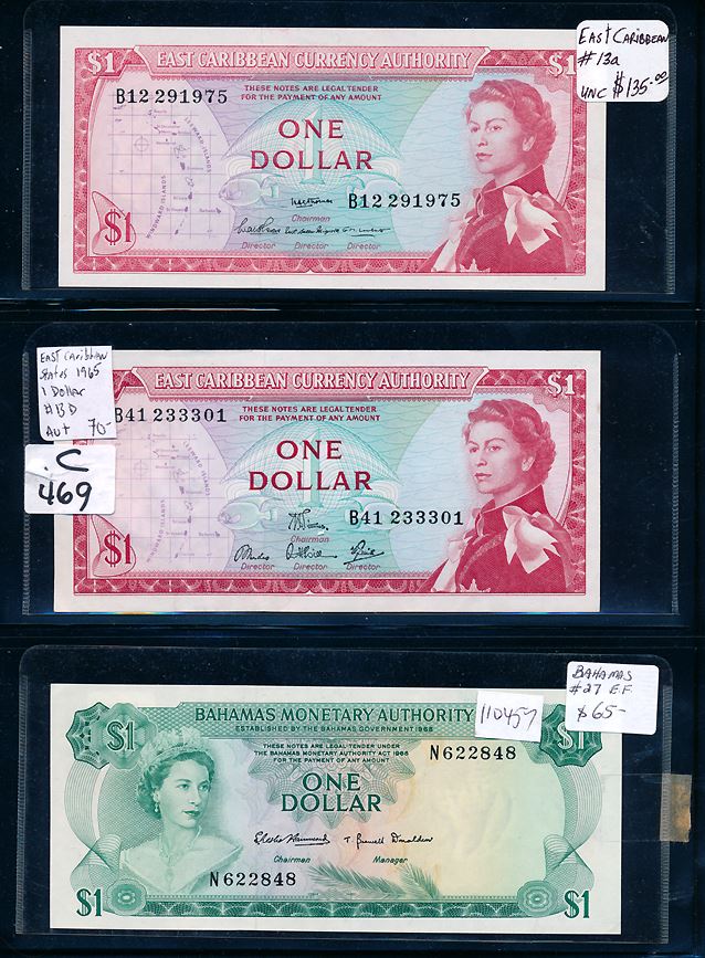 Bahamas, One Dollar, P.27; P.35a, (3); Barbados, $5, P.32; E.C.S., $1, P.13a; 13d; total 6 pcs, EF to AU.