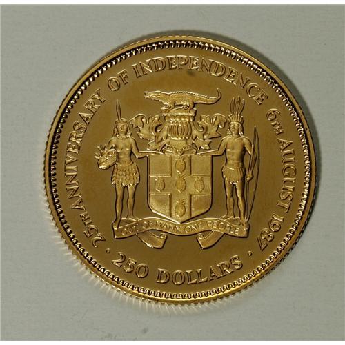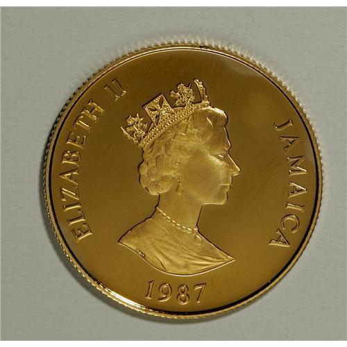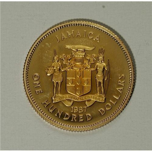 <B>British Commonwealth Proof Gold Grouping,</B></I> including Jamaica 1987 100 Dollars 100th Anniversary of the Birth of Marcus Garvey, KM129, Choice Proof toned, Jamaica 1987 250 Dollars 25th Anniversary of Independence, KM131, Gem Proof and Jersey 1993 One Pound Sailing Ship Century, KM90b, Gem Proof. Each coin is housed in the original packaging with associated papers.<BR><BR><b>Shipping:</b> Coin/Currency (<a target="_blank" href="http://www.heritageauctions.com/common/shipping.php">view shipping information</a>)
