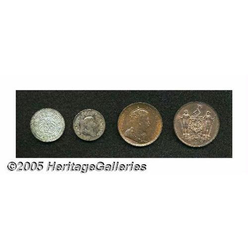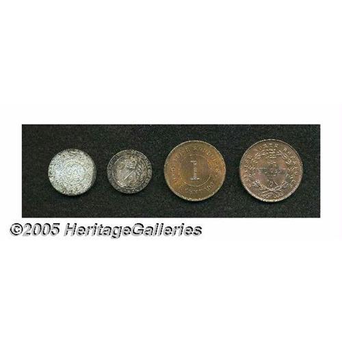 <B>British Commonwealth Selection, </B></I>British Guiana-Essequibo & Demarary 1/2 Guilder 1809, toned XF and very scarce this nice, British Honduras Cent 1904, lustrous AU-UNC, British North Borneo Cent 1891H, choice lustrous UNC, and Mauritius 50 Sous 1822, toned AVF, cleaned long ago. <B>Sold as is, no return lot.</B></I>