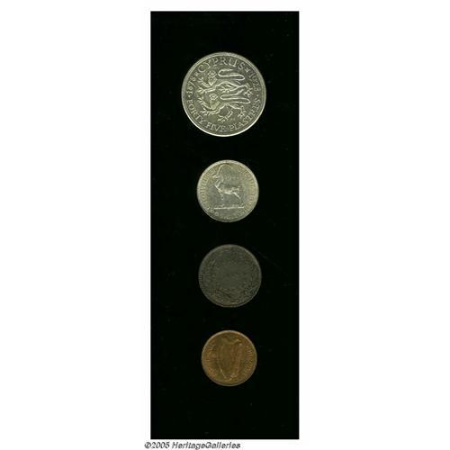 <B>British Commonwealth and Ireland Mixture, </B></I>Cyprus 45 Piastres 1928, XF-AU, lightly cleaned, Ireland 1/2 penny 1935, lustrous UNC, lightly dipped and a few tiny spots, very scarce date in high grade, St. Helena 1/2 Penny 1821, VF, cleaned long ago giving the illusion of luster, and Southern Rhodesia 2 Shillings 1941, lustrous AU and very scarce. <B>Sold as is, no return lot.</B></I>