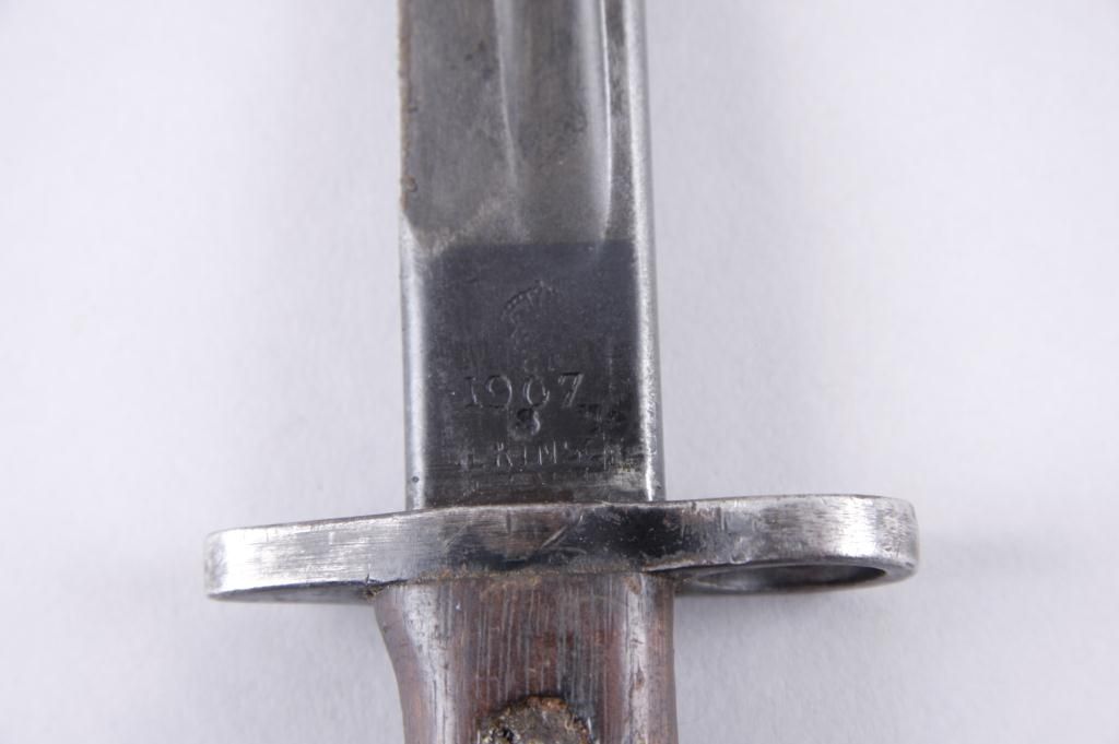 British Enfield Wilkson 1907 Bayonetdated, original scabbard, very good overall condition.