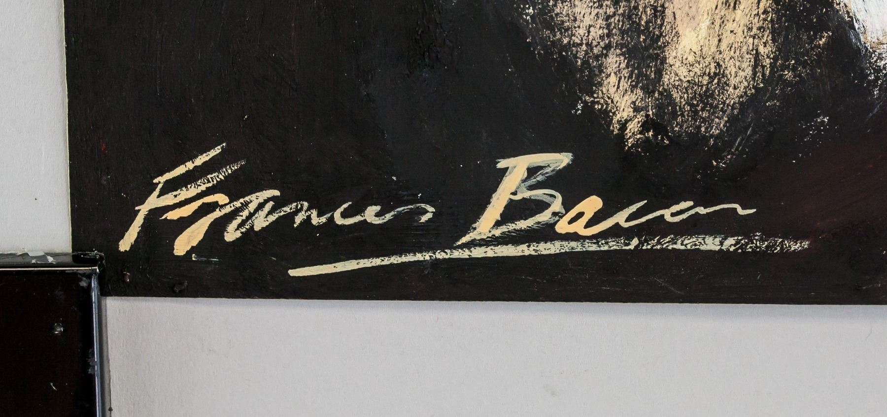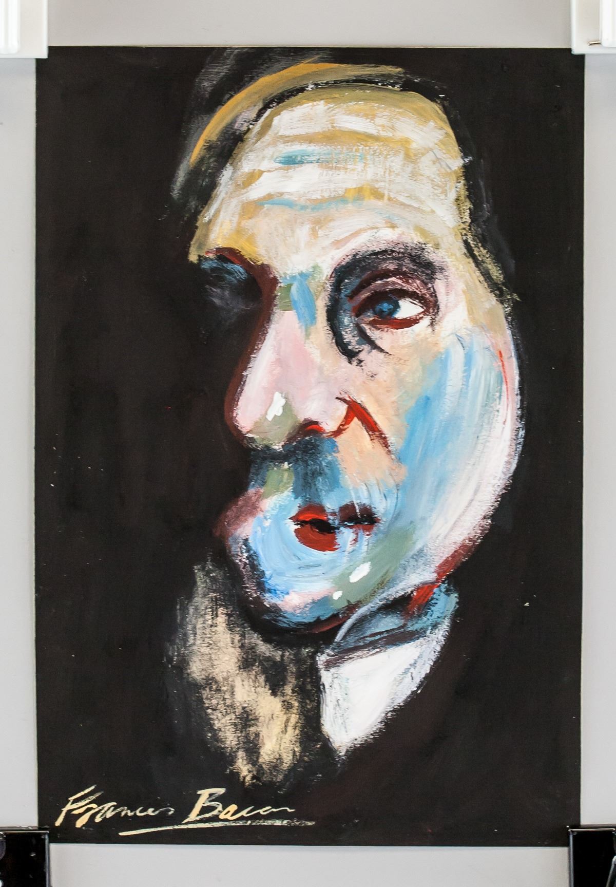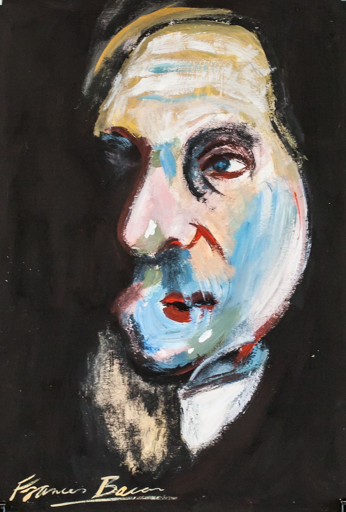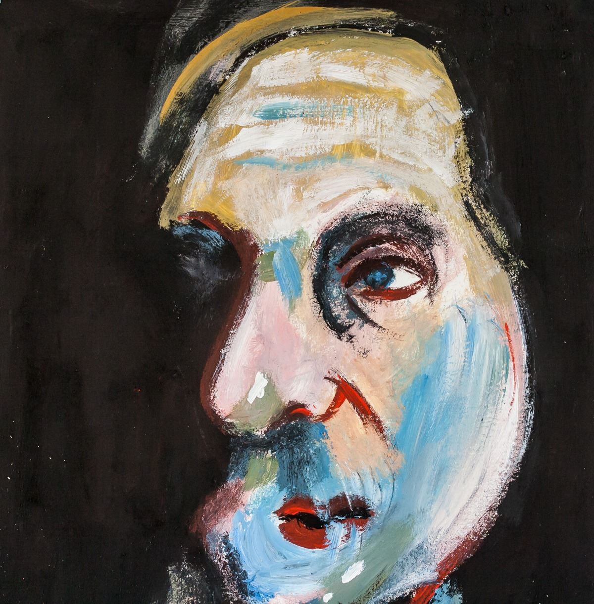 Oil on paper. Featuring an expressionist portrait. Signed illegibly on the lower left corner. Inscribed 20 on verso and stamped illegibly. 27.5 x 19 cm (10.75 x 7.5 inches). PROVENANCE: This lot carries limited provenance from a Southern Ontario estate
