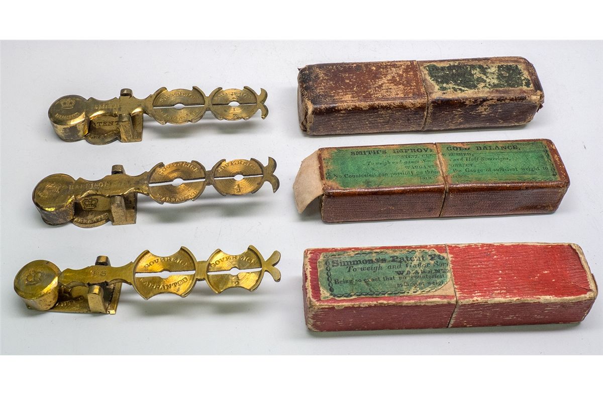 This a lot of 3 brass counterfeit detectors, all are in their original box. The detectors were manufactured by Harrison, Bush’d Smith and T.S. The pieces measure between 4” long to 4.25” long. The boxes have some wear. From the J.J. Ford Collection. - HKA#66188