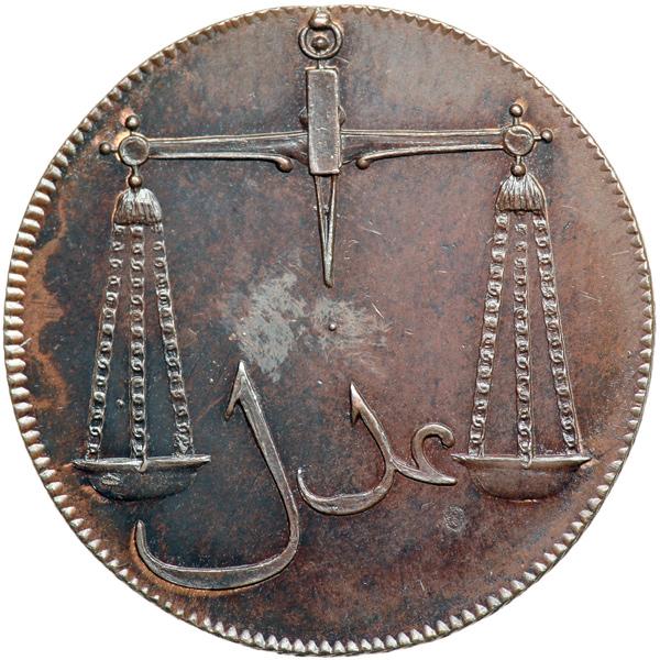 British India. 1 ½ Pice (6 Reas), 1791. KM-195; Pridmore-125. Copper. Currency type. Bombay Presidency. East India Company. Reverse: Large scales. NGC graded Proof 63 Brown.