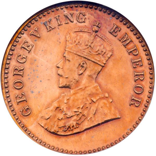 British India. 1/12 Anna, 1913-C. Prid-828; KM-509. Restrike. George V. Crowned bust left. Reverse: Value, country and date within floral border. NGC graded MS-63 Prooflike Red.