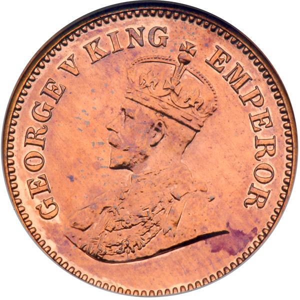 British India. ½ Pice, 1916-C. Prid-749; KM-510. Restrike. George V. Crowned bust left. Reverse: Value, country and date within floral border. NGC graded MS-63 Prooflike.