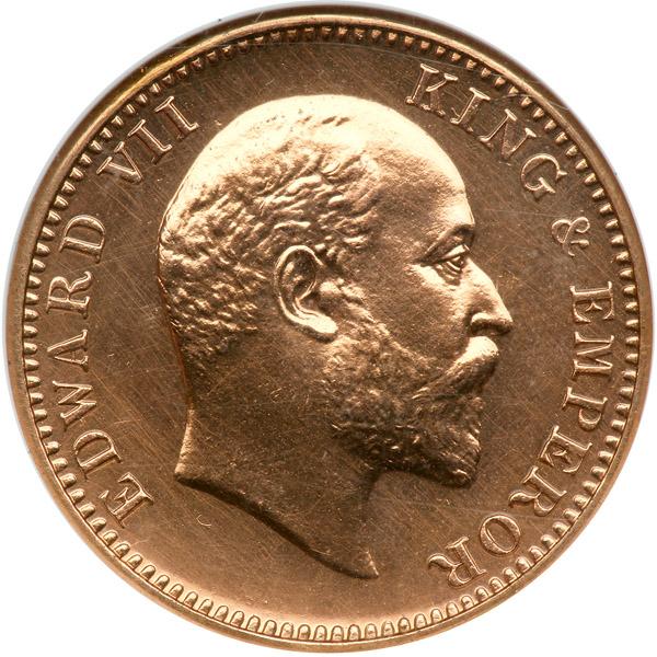 British India. ¼ Anna, 1910-C. Prid-655; KM-501. Restrike. Edward VII. Bare head right. Reverse: Value, country and denomination within floral border. NGC graded MS-63 Prooflike Red.