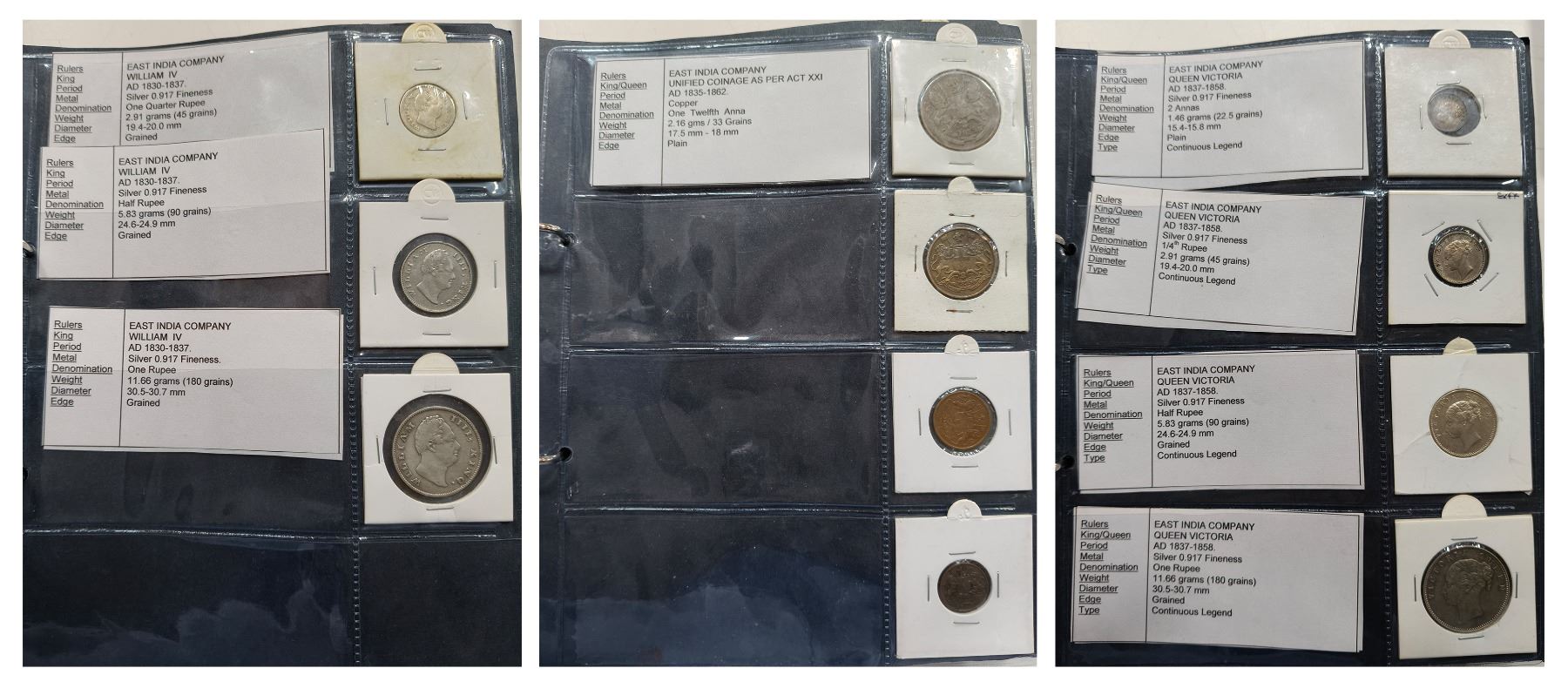 British India: A collection of 58 British India coins commencing from Uniform Coinage in 1835 till Independence of India in 1947, includes various denominations of all rulers; (A) 27 silver coins: William IV (3), Victoria CL (4), Victoria DL (4), Victoria Queen (4), Victoria Empress (4), Edward VII (3), George V (4) and George VI (1) includes rupee, ½ rupee, ¼ rupee and 2 annas; (B) 1 half-silver and 3 nickel coins of George VI includes rupee, ½ rupee and ¼ rupee; (C) 27 copper/bronze, cupro nickel, nickel-brass coins: EIC Uniform Coinage (4), Victoria Queen (4), Victoria Empress (1), Edward VII (1), George V (7) and George VI (10) includes 8 annas, 4 annas, 2 annas, 1 anna, ½ anna, ¼ anna, 1 pice, ½ pice and 1/12 anna. (58 coins)