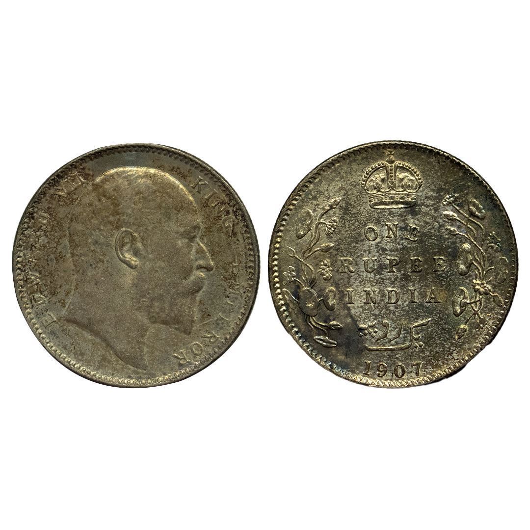 British India, Edward VII, Silver Rupee, 1907, Calcutta Mint, Uncirculated.
