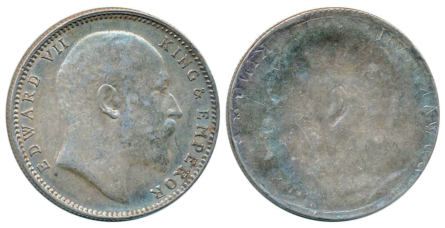 Edward VII, Silver Rupee, Brocage Lakhi. Beautifully toned, extremely fine, very rare.