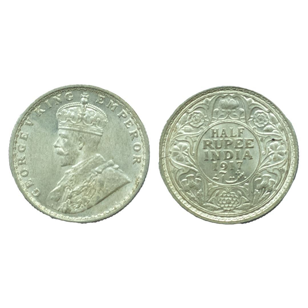 British India, George V, 1917, Silver ½ Rupee, Calcutta Mint