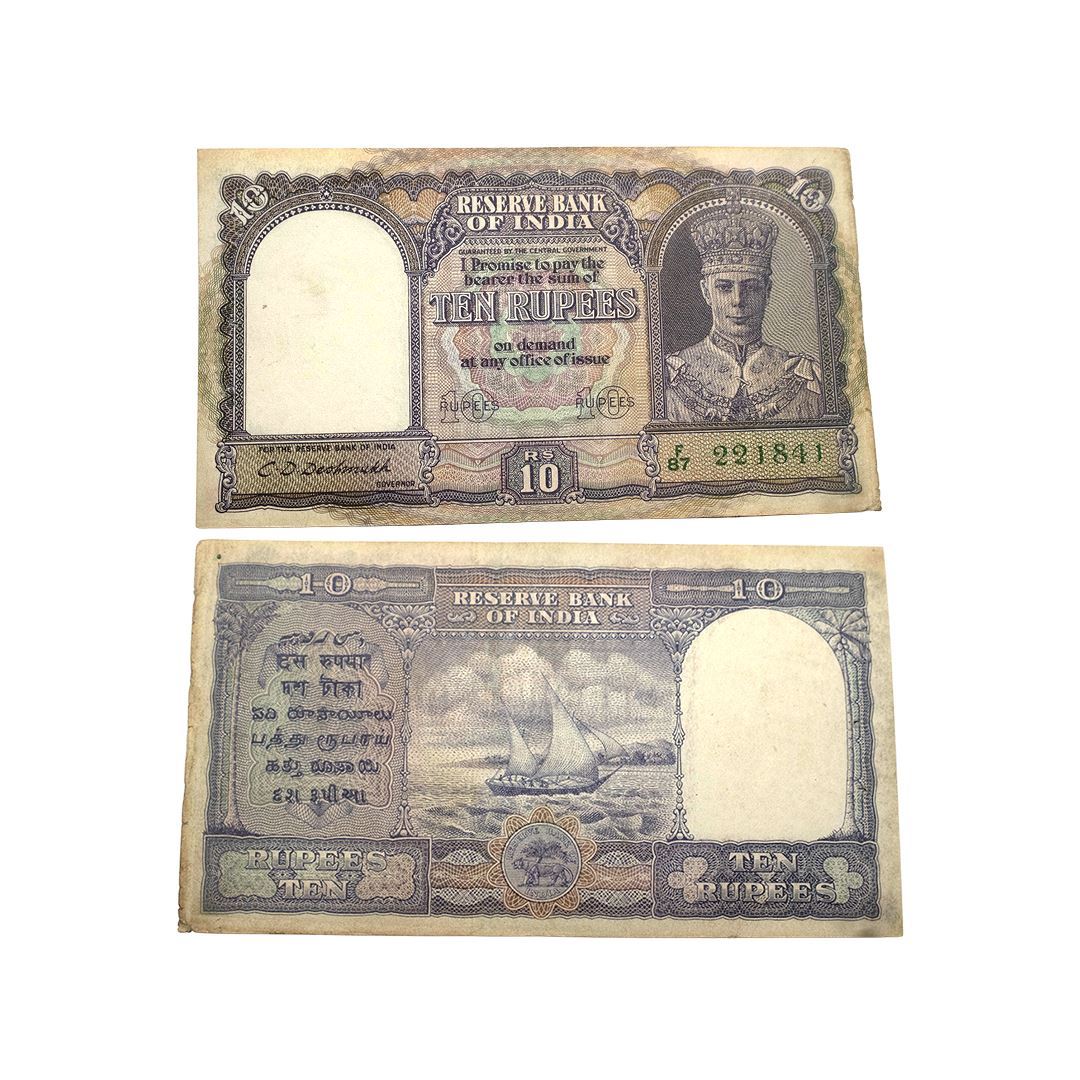 British India, George VI, 10 rupees, 2nd issue, ND (1944), signed by C.D. Deshmukh, serial no.: F87 221841 in green, J&R 4.6.1. Very Fine+ with fold marks, condition as per image, Rare.
