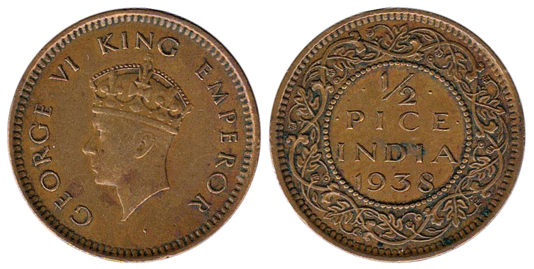 George VI, copper ½ pice, 1938, Calcutta mint, unlisted in PR, GK 1449.