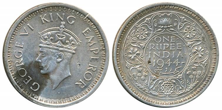 George VI, Silver Rupee, 1944, Bombay Mint, D/II/2 (Unlisted in Pridmore). Very fine, very rare.
