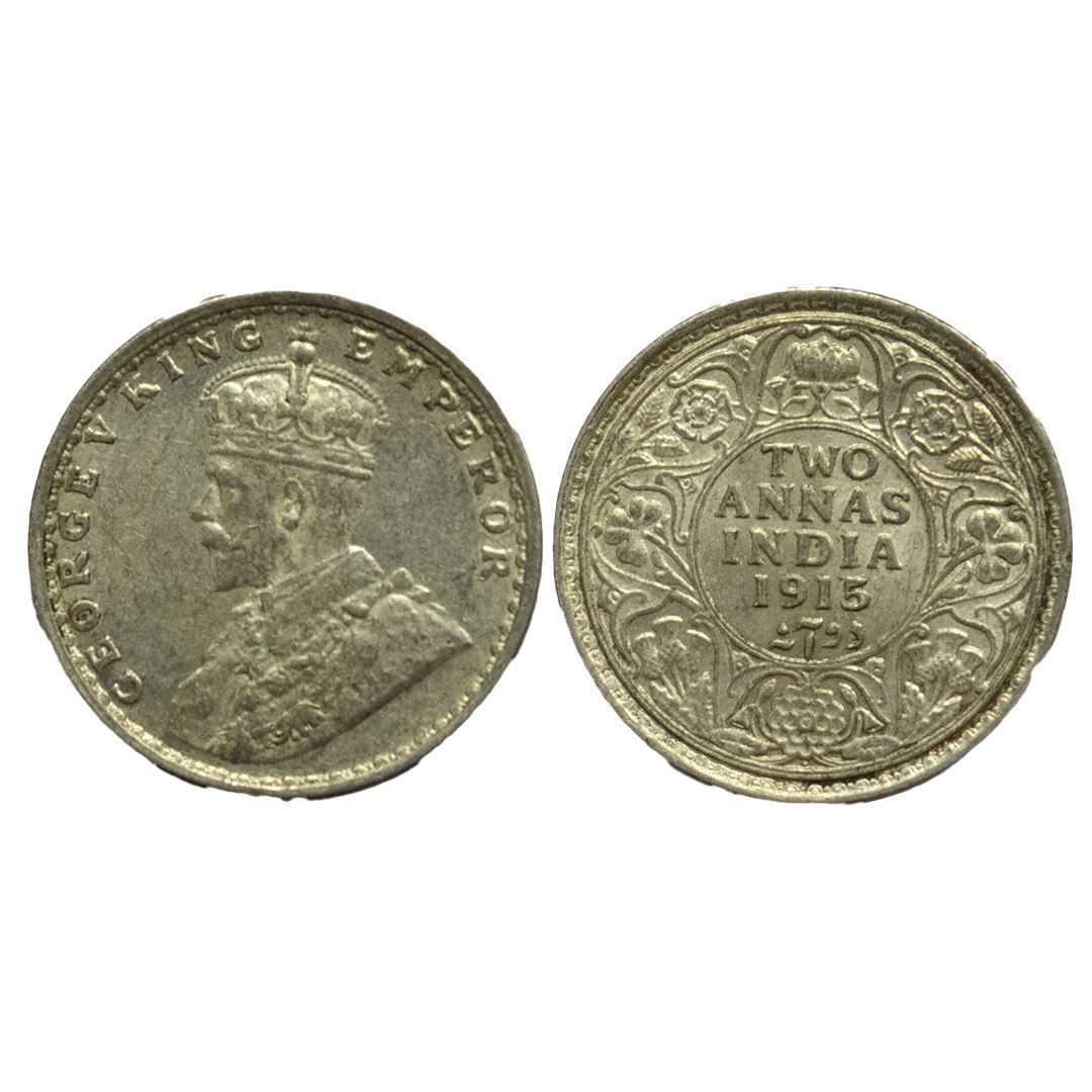 British India, King George V, Silver Two Annas, 1915, Bombay Mint, Uncirculated.