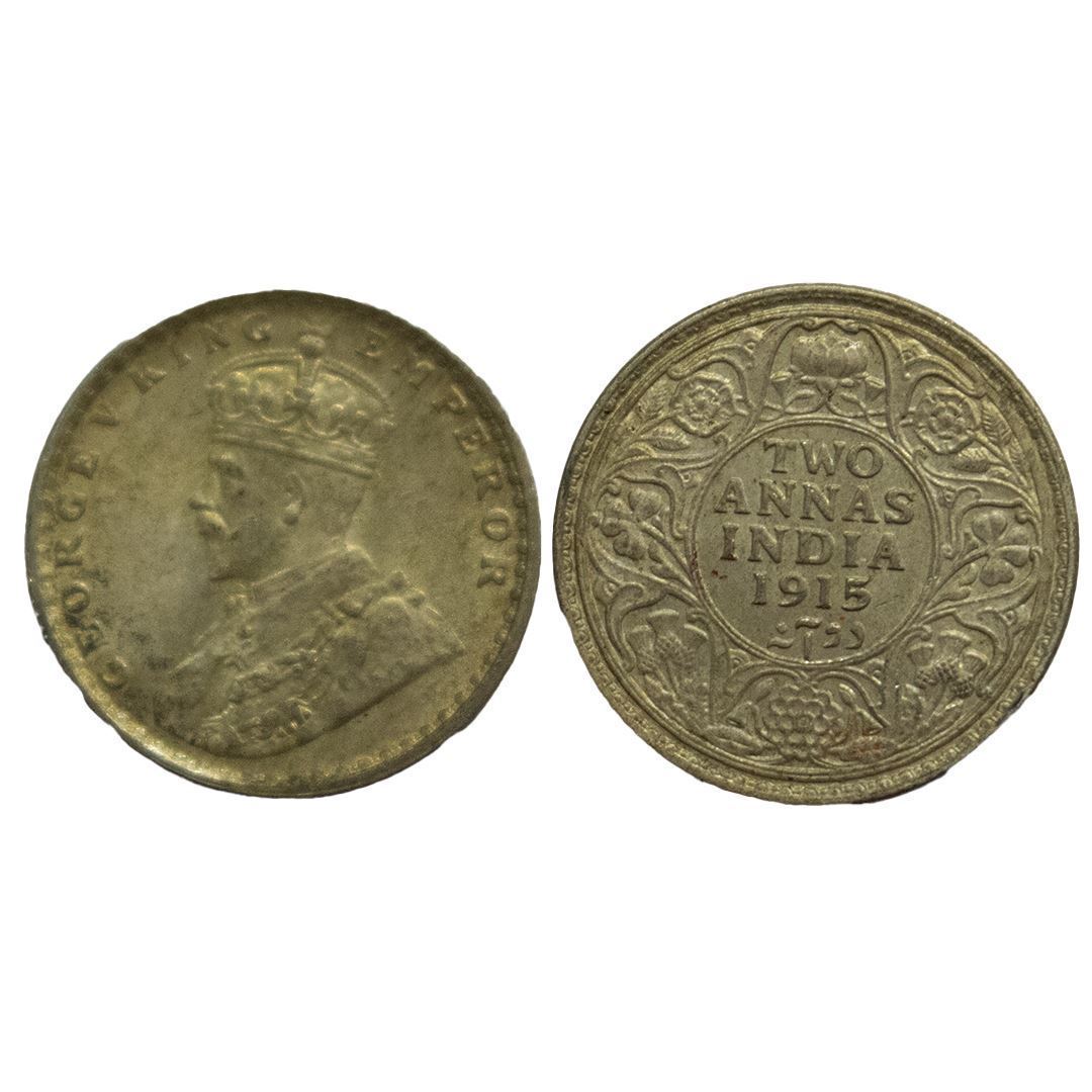British India, King George V, Silver Two Annas, 1915, Calcutta Mint, Uncirculated