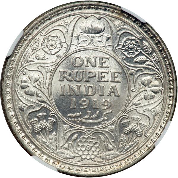 British India. Rupee, 1919-C. KM-524. George V. Brilliant mint luster. NGC graded MS-63.