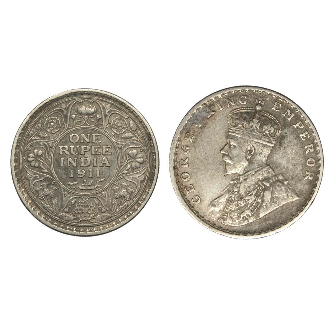 British India, SIlver Rupee, George V, 1911, Calcutta Mint, Extremely FIne, Very Rare.