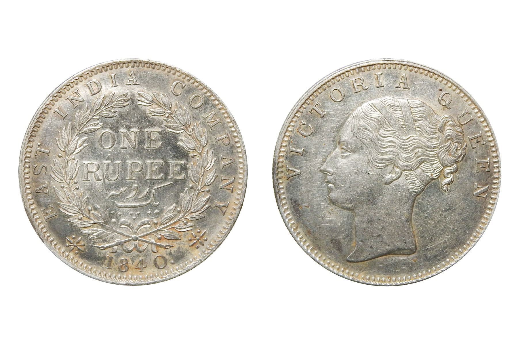 East India Company, Victoria Queen, Continuous Legend, 1840, Silver Rupee, 11.60 grams, 31.72mm,