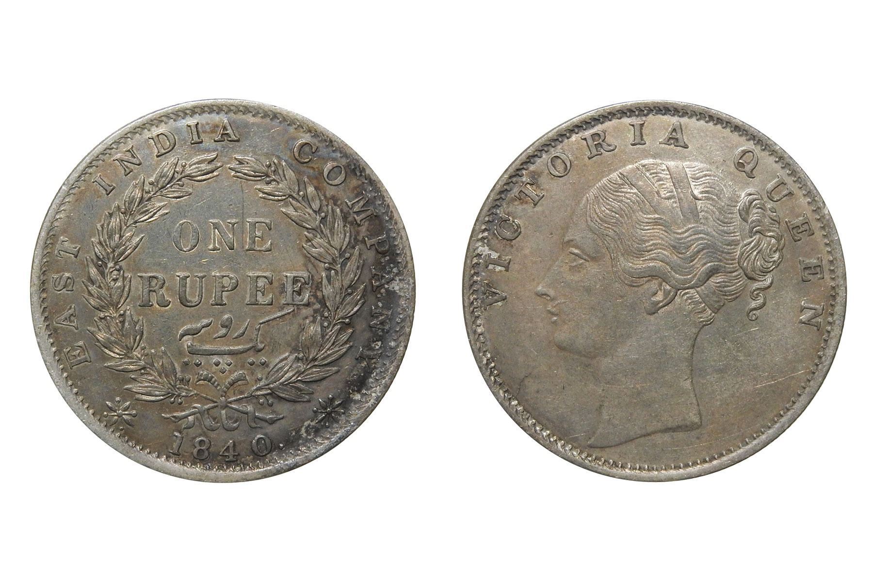 East India Company, Victoria Queen, Silver Rupee, 11.50 grams, minted at Bombay in 1840, (15+12) 35