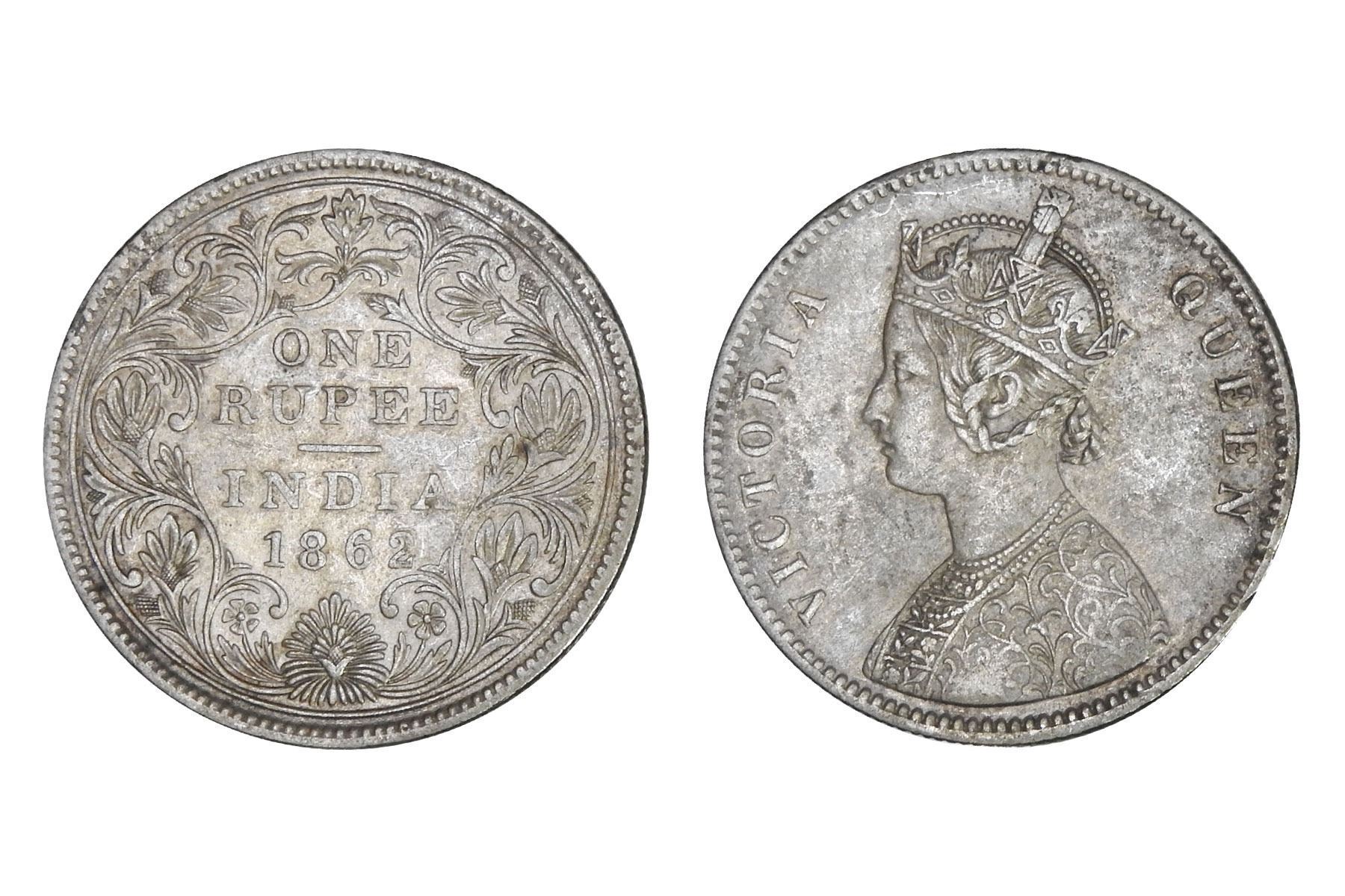 British India, Victoria Queen, Silver Rupee, 11.40 grams, minted at Calcutta in 1862. GK#244, A/II(i),