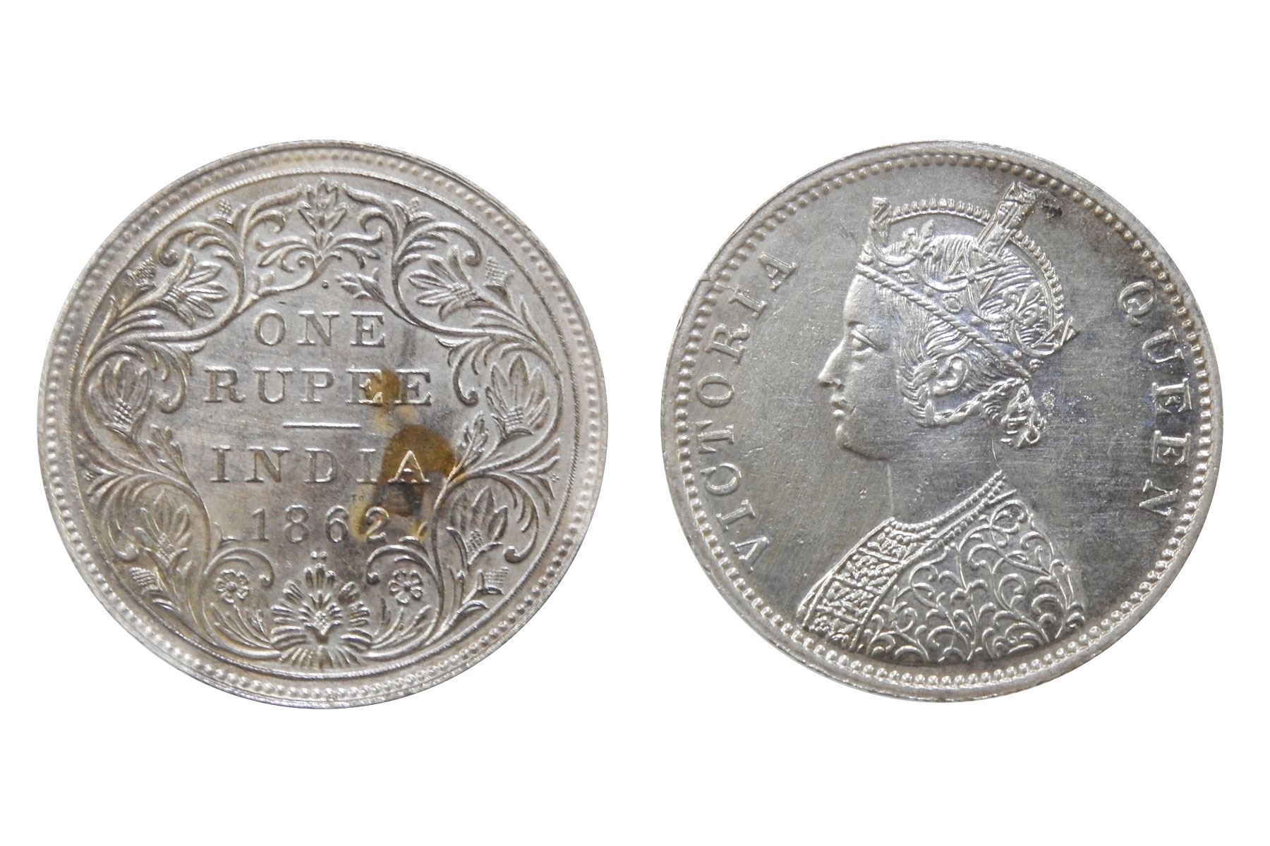 British India, Victoria Queen, Silver Rupee, 11.10 grams, minted at Bombay in 1862. GK#558, A/II/1/2,