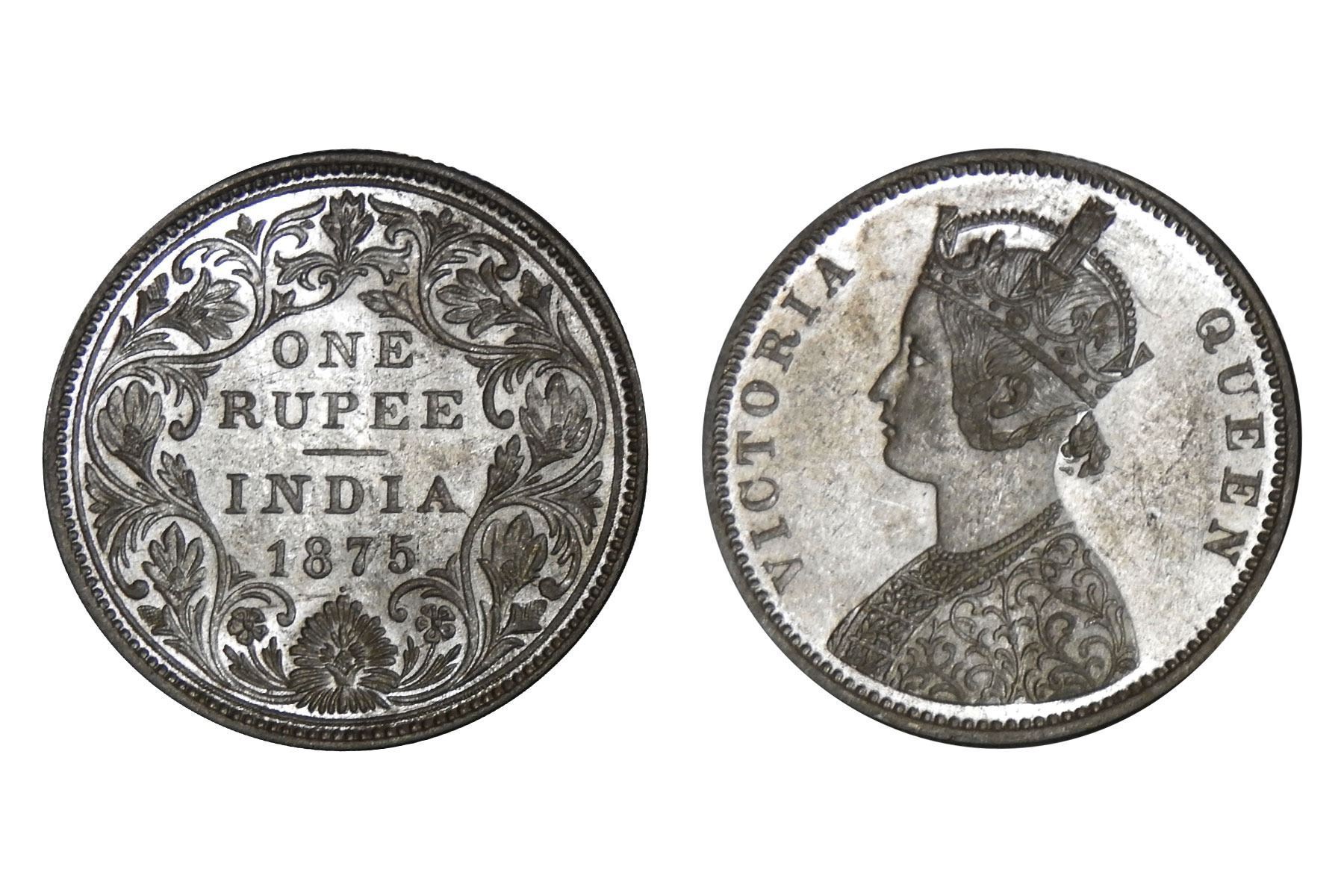 British India, Victoria Queen, Silver Rupee weighing 11.40 grams, minted at Bombay in 1875. Almost