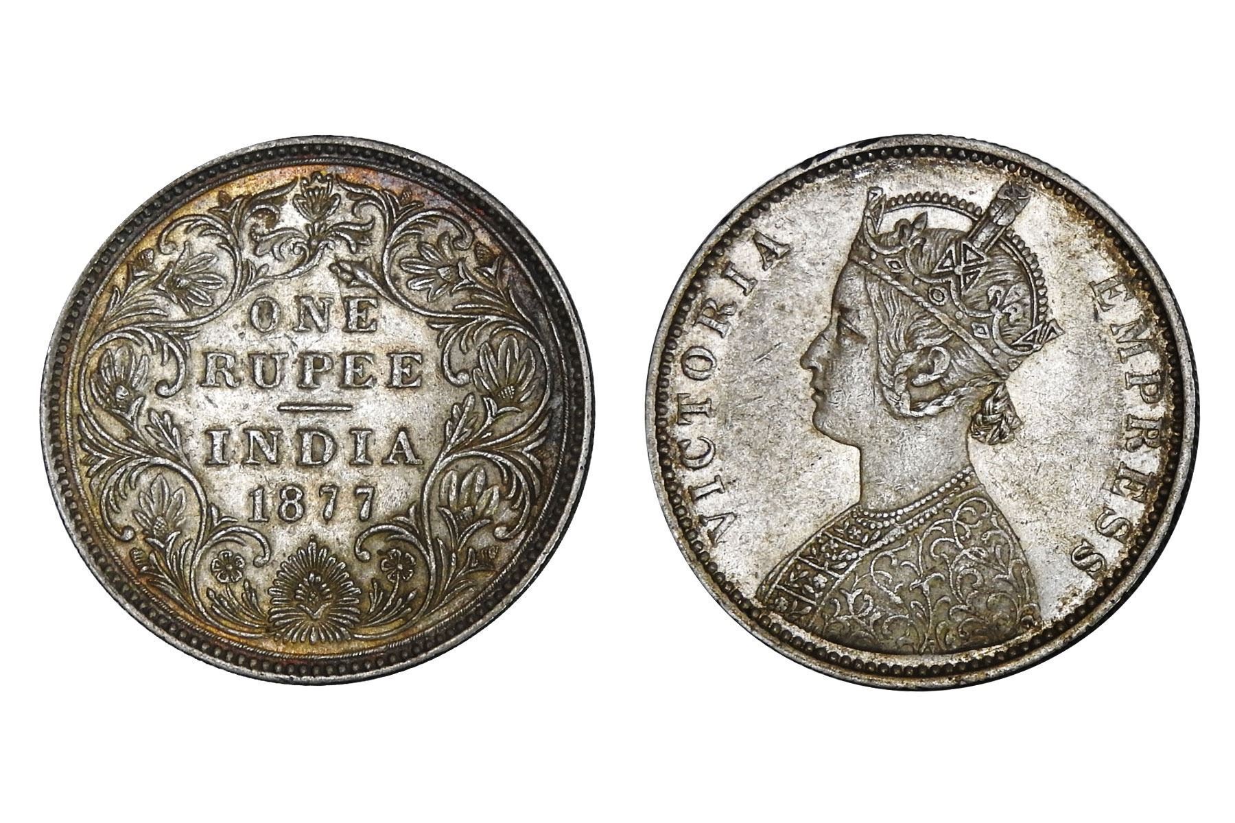 British India, Victoria Empress, Silver Rupee, 11.80 grams, minted at Bombay, dated 1877, Very Fine+,