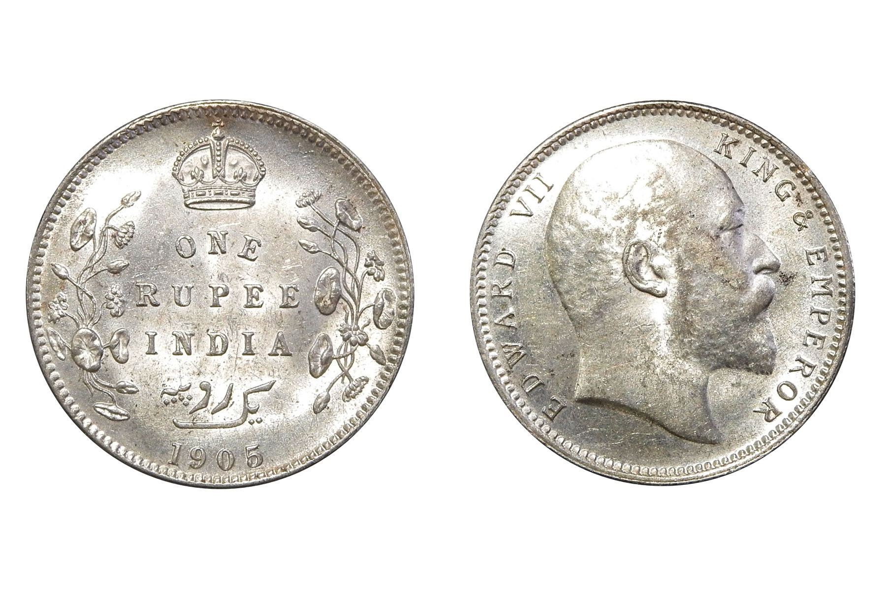British India, Edward VII, Silver Rupee, 11.60 grams, minted at Calcutta in 1905. Uncirculated
