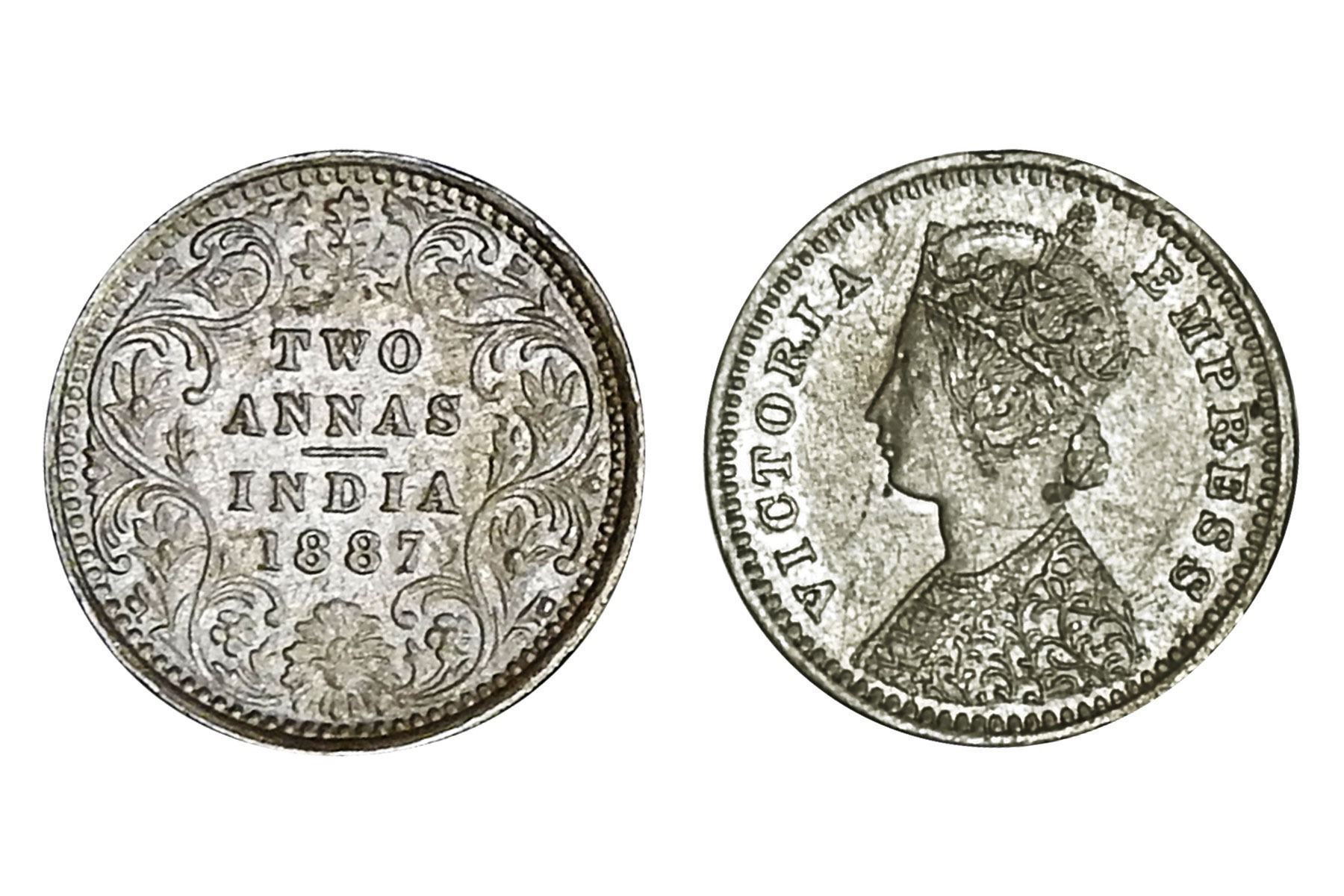 British India, Victoria Empress, Silver Two Annas, 1.40 grams, struck at the Bombay Mint, dated 1887, Very