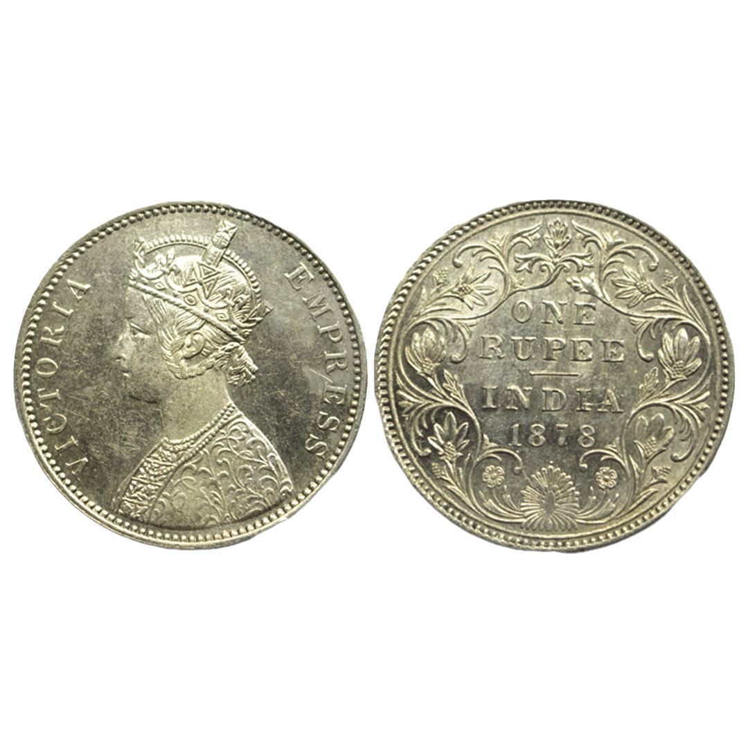 British India. Victoria Empress, Silver Rupee, 1878, Bombay MInt, Uncirculated, Scarce