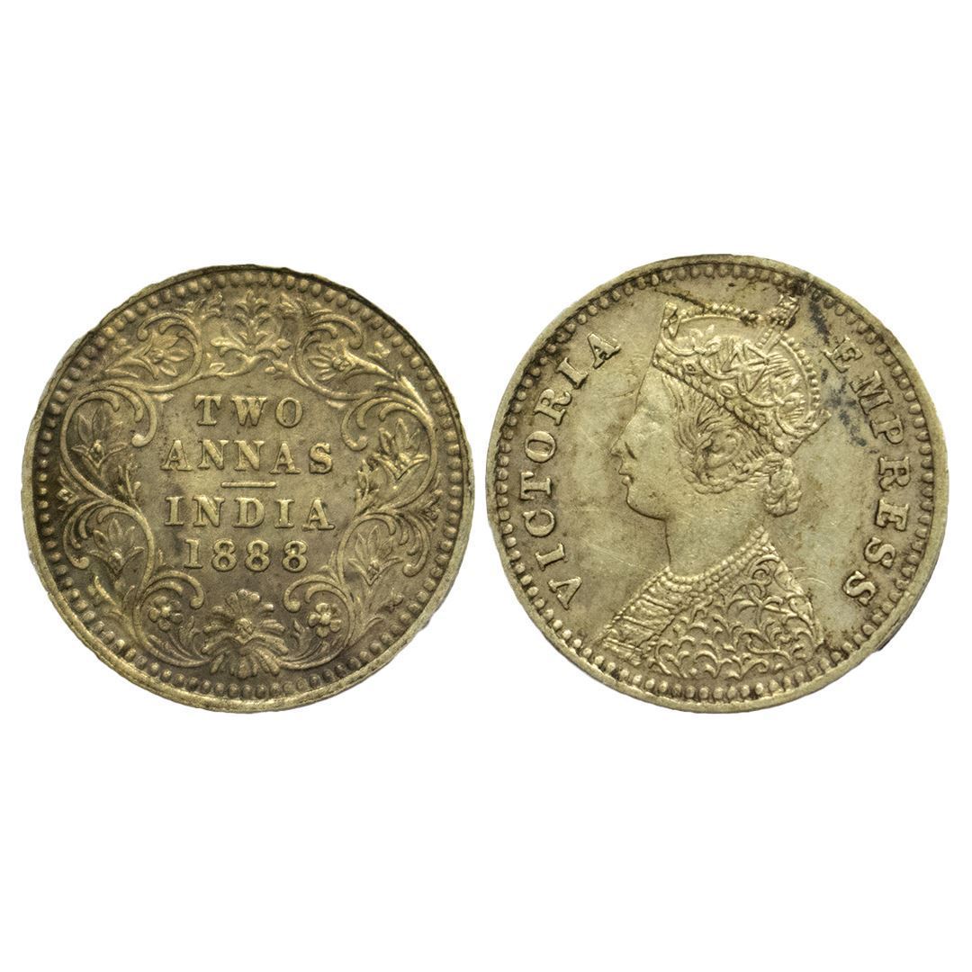 British India, Victoria Empress, Silver Two Annas, 1888, Bombay MInt, Extremely Fine.