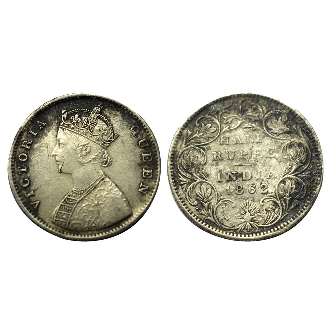 British India, Victoria Queen, 1862, Silver ½ Rupee, Madras Mint
