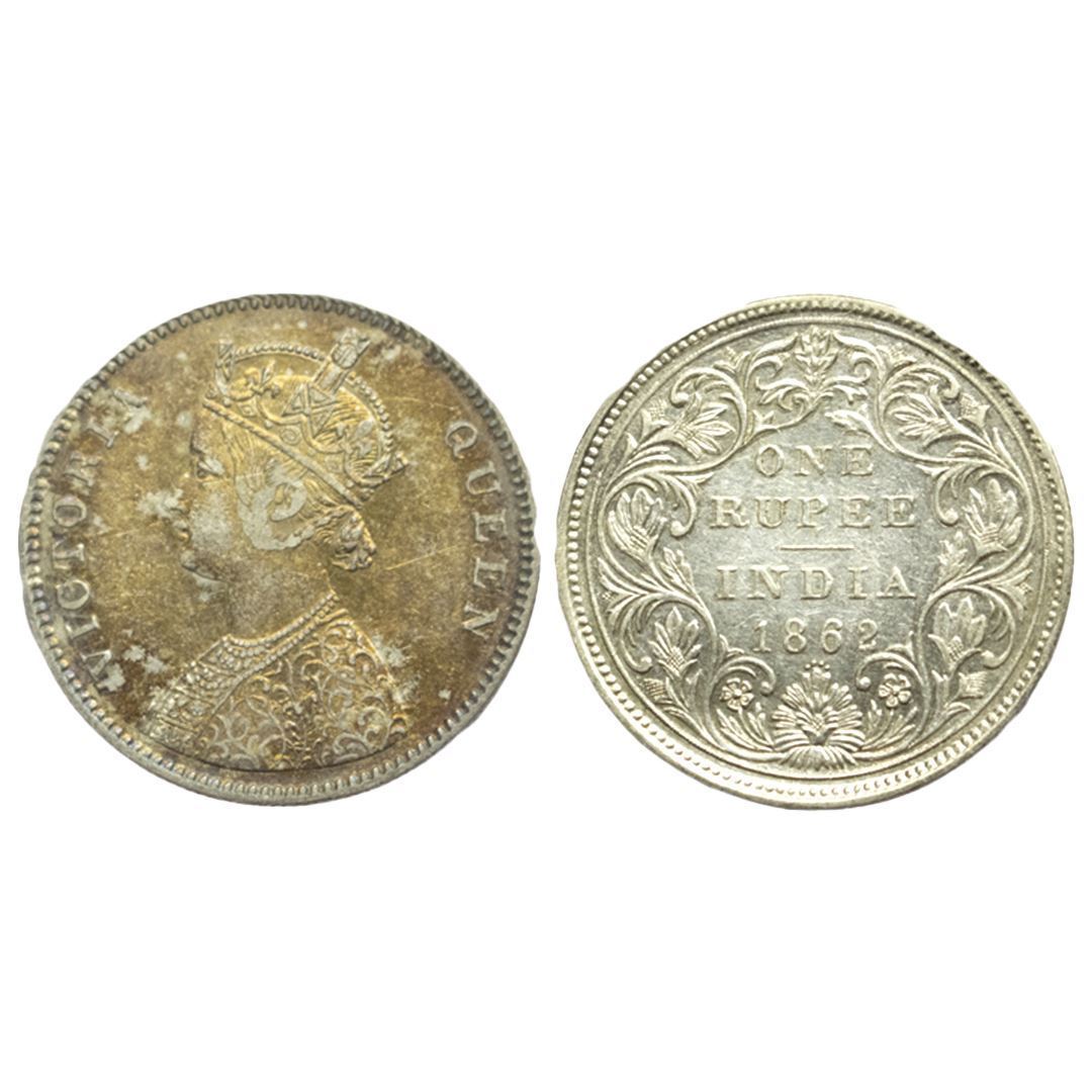 British India. Victoria Queen, Silver Rupee, 1862, 0/4 Dots