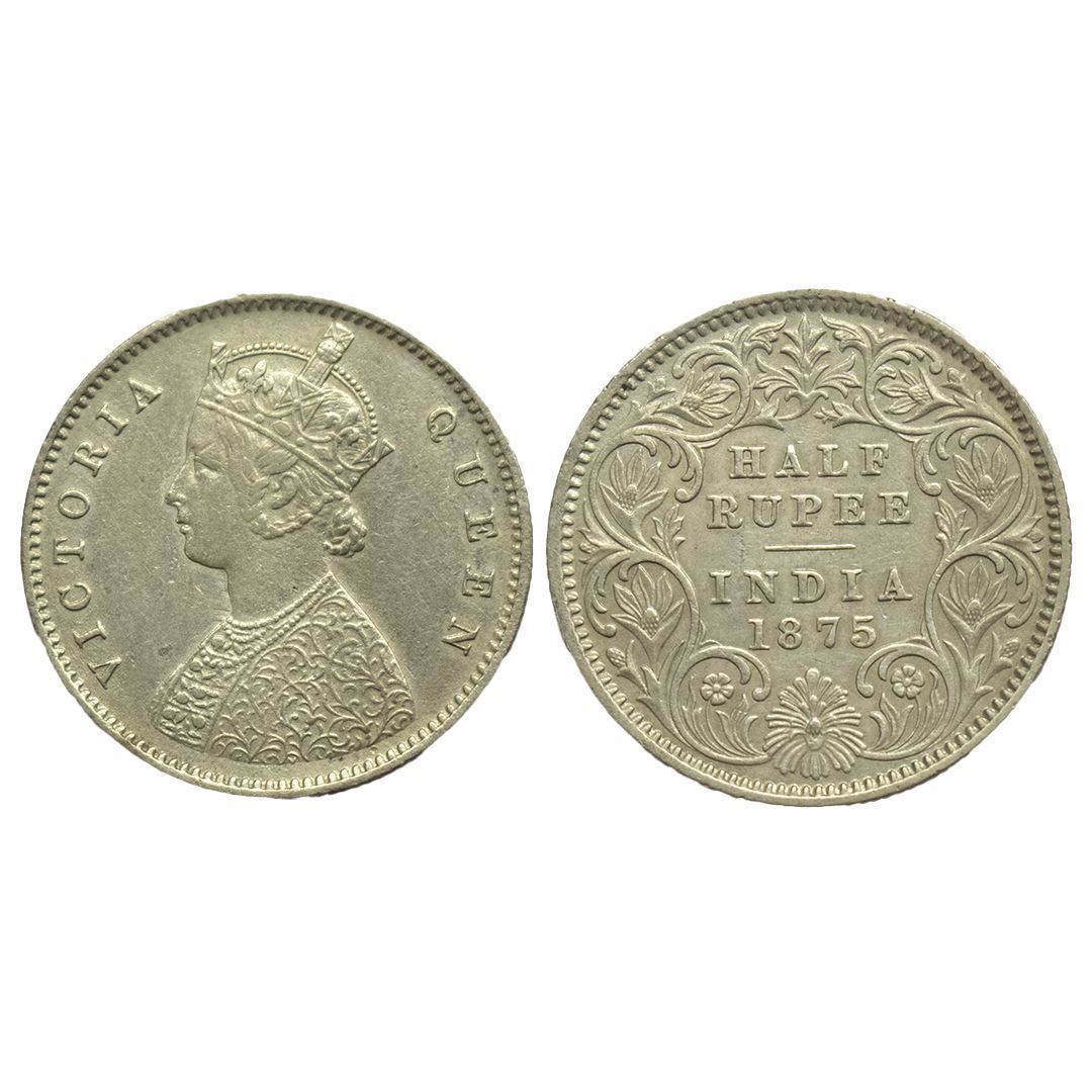 British India, Victoria Queen, Silver ½ Rupee, 1875, Calcutta Mint